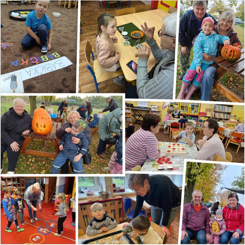 Další návštěvu, kterou jsme u nás ve školce přivítali byli babičky, dědečkové a všichni příbuzní našich dětiček, kteří k nám přišli na „Babiččino zachumlání.“ Tento den byl věnovaný Vám a Vašim dětem. Společně jsme strávili příjemné dopoledne v otevřené školce, kde jste si s dětmi zahráli různé hry, tvořili u stolečku a na zahradě společnými silami vydlabali a ozdobily dýně, které dodnes zdobí vchod do naší skřítkovské školky. Děkujeme Vám všem, kteří se tento den přišli podívat za svými malými vnučkami a vnoučky a v prostorách naší MŠ zavzpomínali na svá dětská léta. 😊