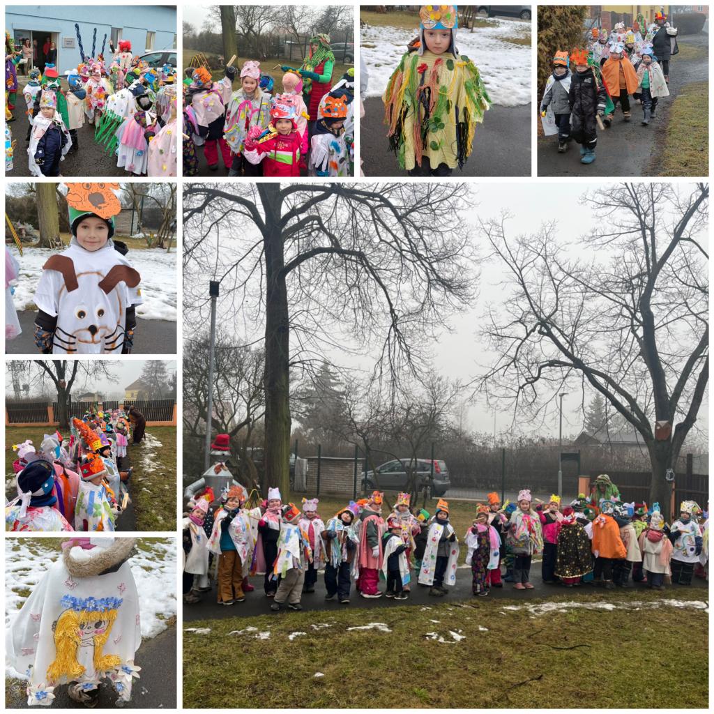 Ve fotogalerii stojí za shlédnutí i náš masopustní průvod. Stejně jako my, pokochejte se přenádhernými pelerínami, které zdobily Vaše děti na našem tradičním masopustním průvodu. Masopustní průvod jsme si rozdělili do dvou dnů. První den se k nám připojili i babičky z místního klubu seniorů. Společně jsme šli dle tradice rozveselit a obdarovat masopustními koláčky nejen naše prvňáčky a pana ředitele na místní Základní školu, cestou jsme navštívili i pana starostu na obecním úřadě nebo jsme zazpívali naše masopustní písně paní v pekárně a na poště. Cestou zpět do školky jsme rozveselili i pár kolemjdoucích, obdivně pokukujících spoluobčanů. Druhý den, jsme se společně s dětmi vydali směrem do průmyslové zóny, kde jsme místní firmy oslnili krásnými převleky a zpěvem. Taky jsme byli slyšet v každé ulici, jelikož děti hrály i na hudební nástroje a zvuk řehtaček či rolniček se linul všemi směry. Během masopustního průvodu si děti poctivě vyzpívaly sladkou odměnu od místních firem, na které si ještě tentýž den pochutnaly. 😊 Děkujeme Vám všem, se kterými jsme se potkali. A Vám, rodičům, chceme vyseknout poklonu a poděkování, za Vaše dechberoucí nápady a originalitu při vytváření masopustních pelerín. Jedna byla hezčí než druhá a všichni jsme se společně pyšnili, jak se nám to letos opět krásně vydařilo, a to jen díky Vaší opětovné spolupráci. Děkujeme Vám! 😊