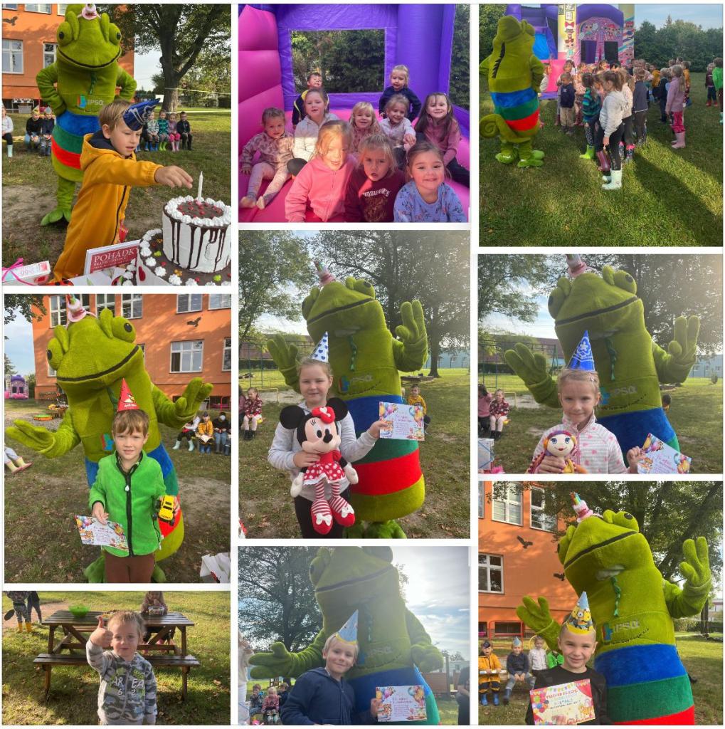 A jako každý měsíc budeme slavit narozeniny Vašich dětiček, tak letos jsme si tu první zářijovou oslavu opravdu užili! Byla to párty, jak se patří, jelikož jsme oslavovali narozeniny nejen dětí, narozených v září, ale i dětí, které mají narozeniny o prázdninách a dětí, které chyběly na narozeninovém dnu v červnu, loňský školní rok. A protože nám přálo počasí, hodovali a trsali jsme na zahradě MŠ. Obří překvapení byl pro děti skákací hrad, který nám sponzorsky zajistila firma www.nafukovačky.cz, tímto rodičům naší Jasmínky velmi děkujeme. Ani klukům předškolákům nevadilo, že byl hrad růžový, vyřádily se v něm úplně všechny děti, dokonce si skočila i paní učitelka. :-P Pečlivě vše dokumentujeme, takže i fotky z narozeninového dne máte k dispozici k nahlédnutí nebo ke stažení v naší aplikaci ve fotogalerii. Celým dopolednem nás provázel i náš nový narozeninový kamarád chameleon BOB.