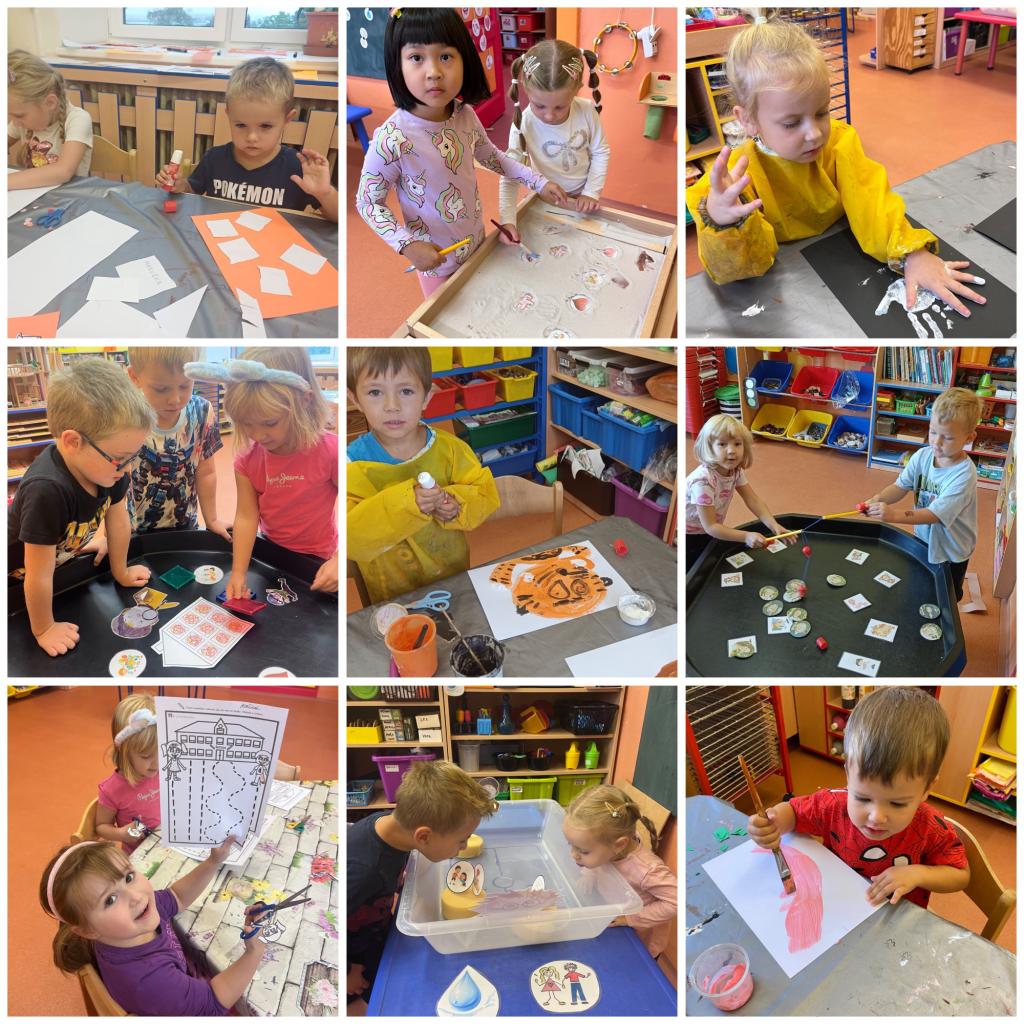Ke snadnější adaptaci dětí využíváme od prvního dne i naší „otevřenou školku“. Děti tak mají možnost samy si vybírat a rozhodovat, co v daný moment chtějí vyzkoušet, poznávat a s kým. V každé naší chaloupce (třídě) si paní učitelky připravují odlišné a motivované aktivity, které děti podněcují k rozvoji samostatnosti, tvořivosti a touze k objevování. Děti mají možnost se pohybovat po školce v souladu se svými individuálními potřebami a emocemi. Starší děti dopomáhají těm mladším a stávají se pro ně samostatným vzorem. V prvních dnech se nám osvědčily oblíbení plyšoví mazlíčci nebo malůvky na ruce, které dětem dodávaly pocit bezpečí a napomáhaly přečkat dobu čekání na maminku. 😊